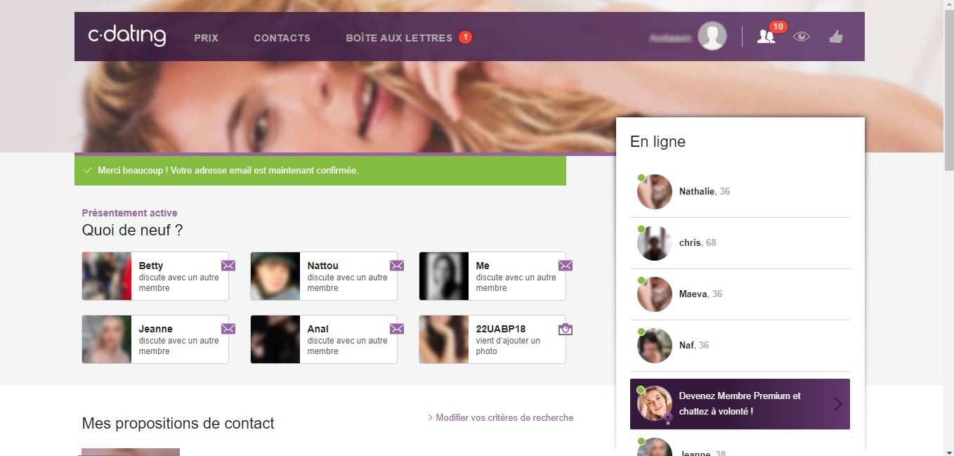 Je suis sur Cdate il y a plus de 6 mois. Je ne rencontre pas des tonnes de femmes, mais au moins une par mois. C'est pas mal, surtout que je ne me connecte pas non-plus tous les jours ...