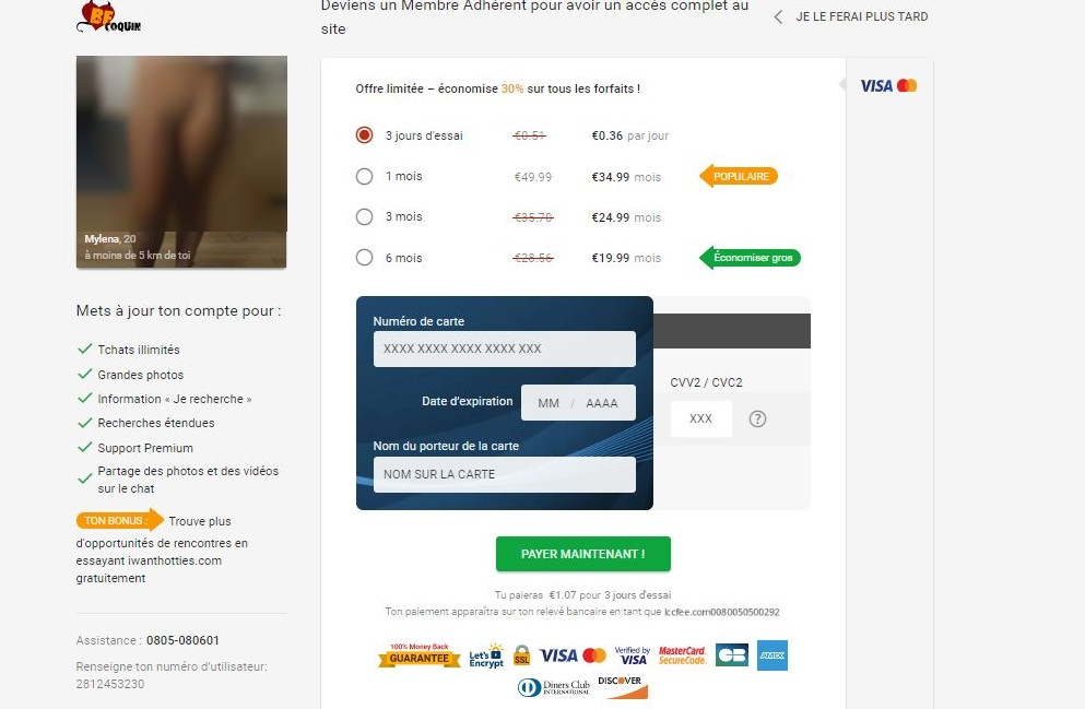 L’inscription sur ce site de rencontres coquines est gratuite, mais pour avoir vraiment l’utiliser, il faut souscrire un abonnement qui permet de :
